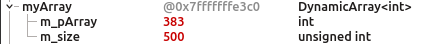 m_pArray' variable (an address) as part of the value for the overall object. The reason for this is so that when the node is collapsed in the tree, the important information is easily visible. In order to get the correct pointer (and to use it later on for referencing the actual values), we obtain the inner type of the template argument and cast the array member to that type. We are however using the actual address of the object (